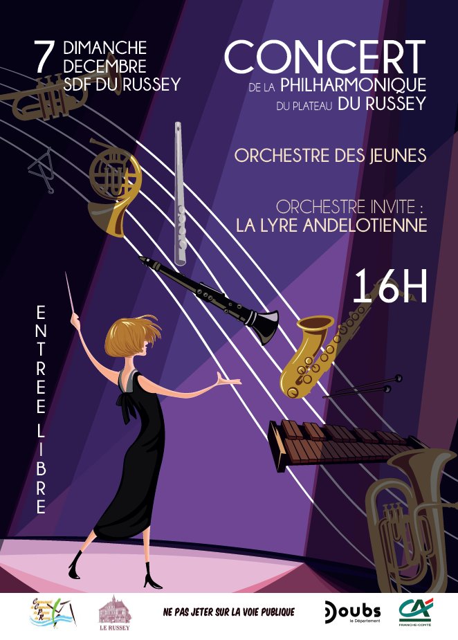 La Philharmonique vous invite à son prochain concert, qui se tiendra le dimanche 7 décembre à 16h à la salle des fêtes du Russey.